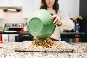 - Pour out on cookie sheet. They don’t have to be in a single layer, they can be piled on top of each other.