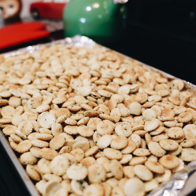 - Add oyster crackers in and gently mix until all crackers are covered.