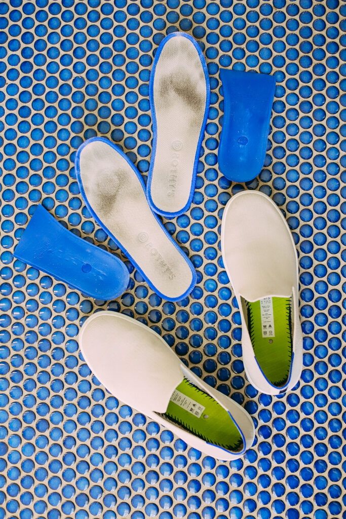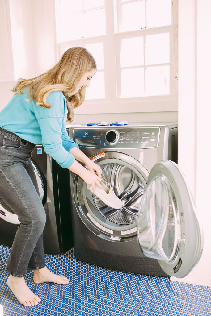 I’ve washed my Rothy’s Sneakers twice now and both times they come out spotless. I just add a little detergent and a little stain remover to any tougher stains and pop them in the wash. There are few pieces I remove before throwing them in.