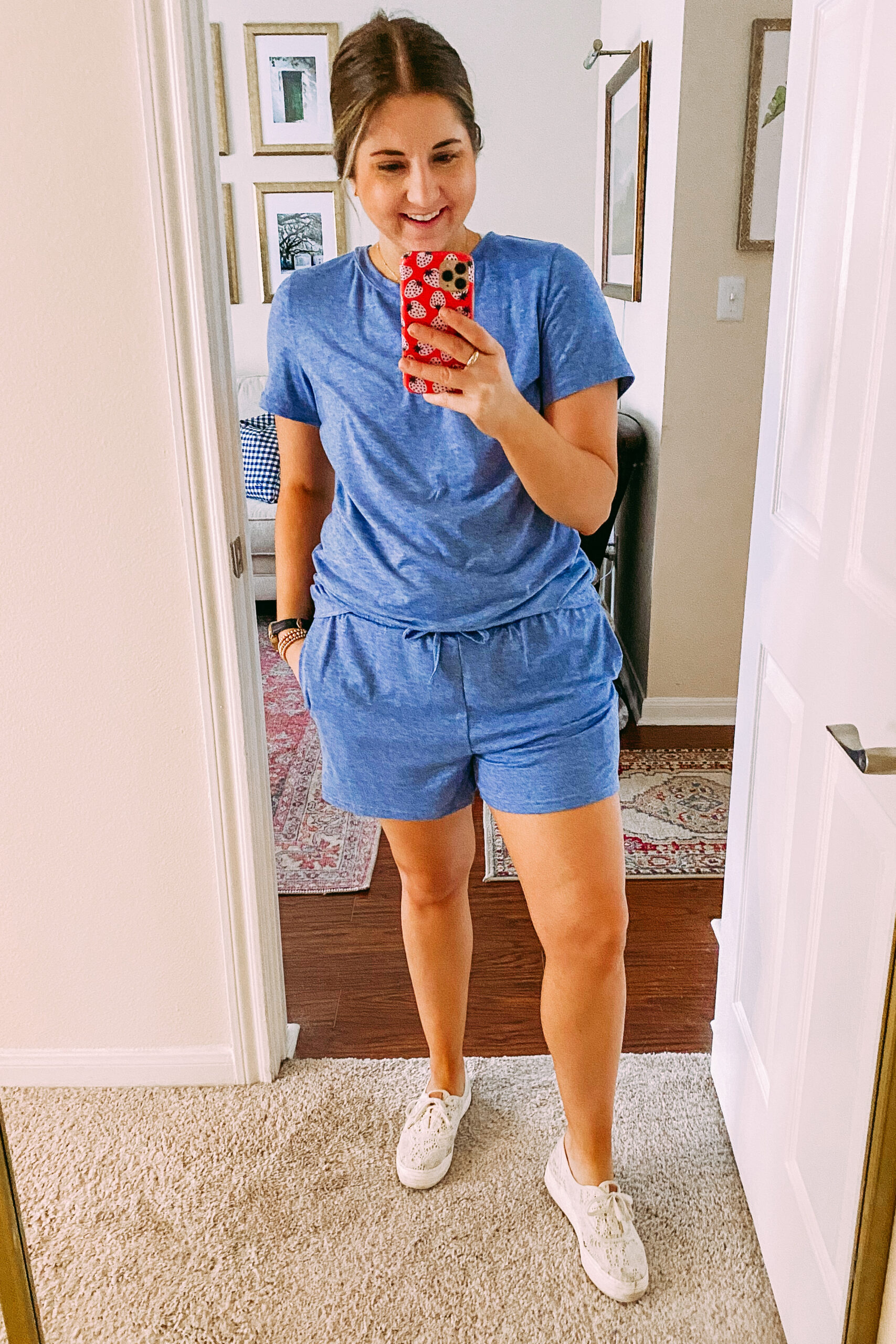 For those rainy days spent catching up on reality tv, I’ve been loving this lounge set. I actually bought it in coral as well! They are great for pajamas, lounging, or even car trips if you want something comfy but still cute.