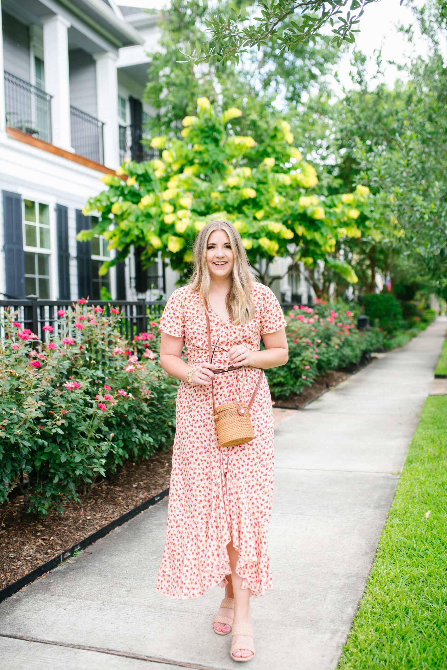 Ok, y’all this has to be my FAVORITE dress of the season! I am definitely a little more self-conscious now given the extra COVID weight I mentioned earlier but this dress makes me feel like a million bucks! It’s so flattering and so comfortable and just checks all of the boxes. It’s literally so nice I bought it twice! I loved the orange so much I wanted it in another option.