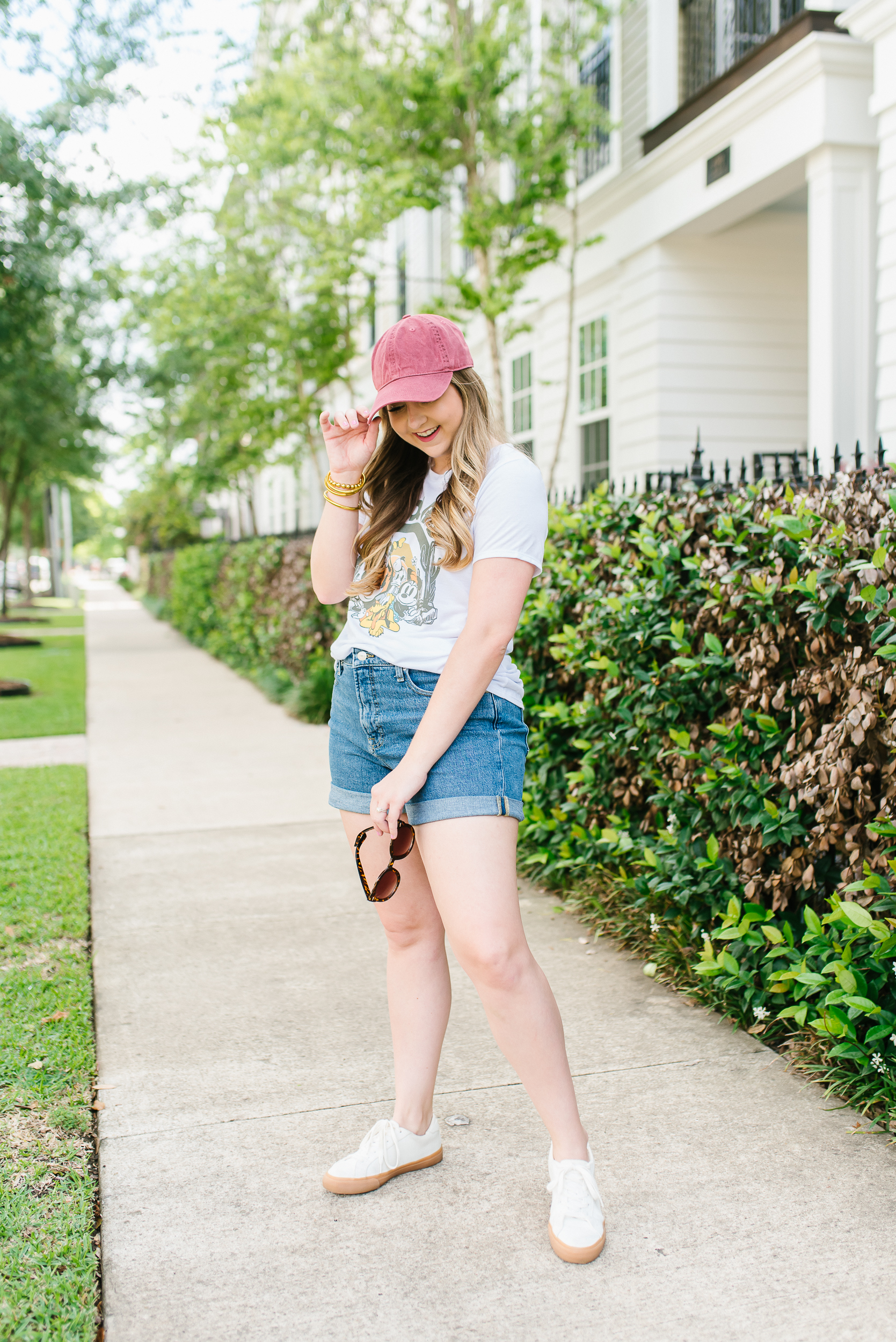 I have never really been a baseball hat girl but this summer something has changed. I have been loving plain baseball hats for a casual look. Whether it’s to dress down a summer dress or complete an already casual look these $12 Amazon baseball hats have been my go-to!