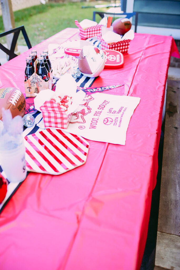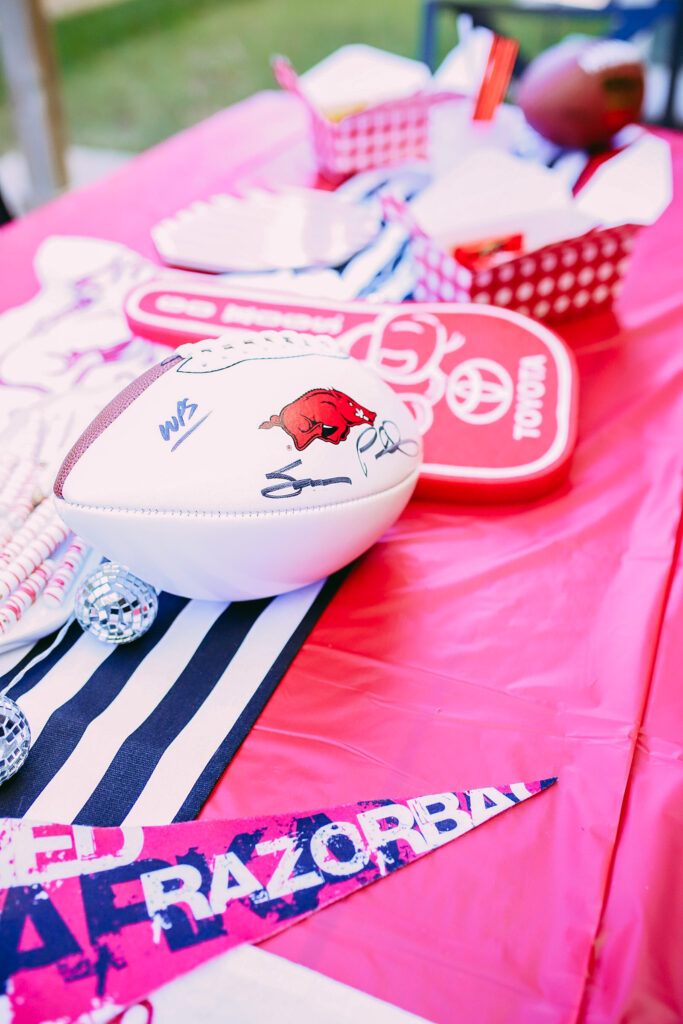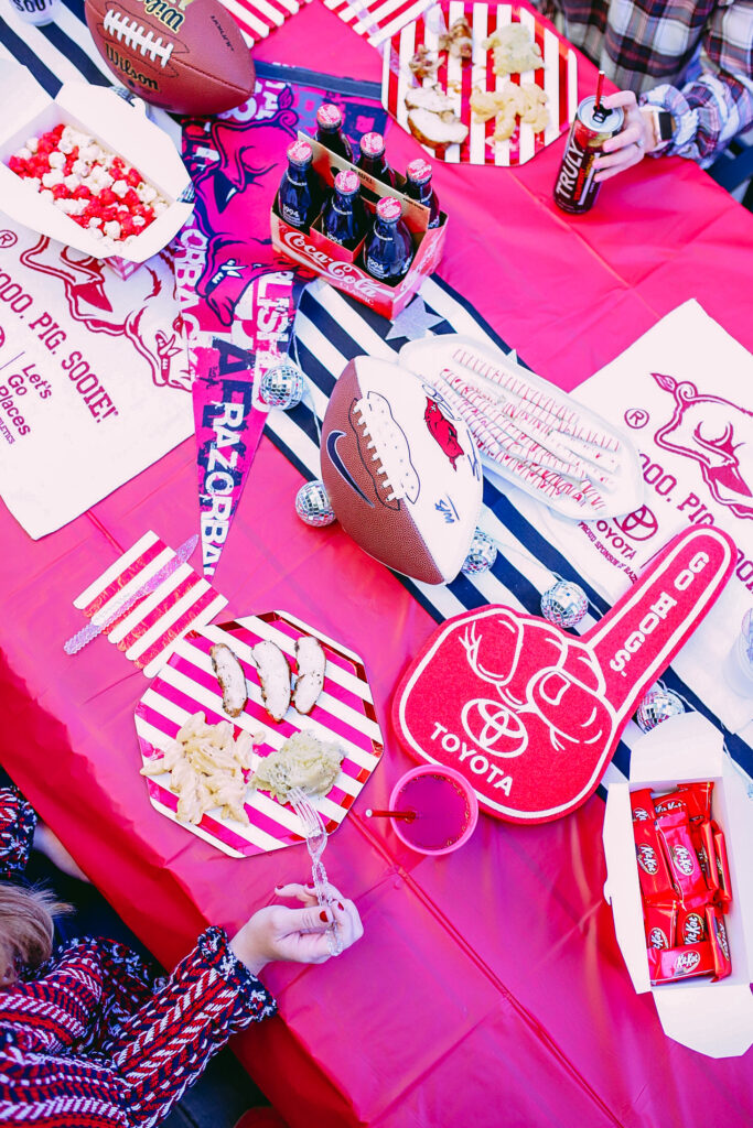 Football season is back this year and honestly bigger than ever! So many fans are excited to be back in the stands and back at the tailgates. I am an adjacent sports fan due to Jared’s love for the hogs and frogs (Arkansas and TCU, of course). I am, however, a fan of parties and any excuse to see friends! At the end of last year, I threw an at-home tailgate, and since I never got a chance to share it I thought would give you some tailgate party inspiration for your tailgates this year!