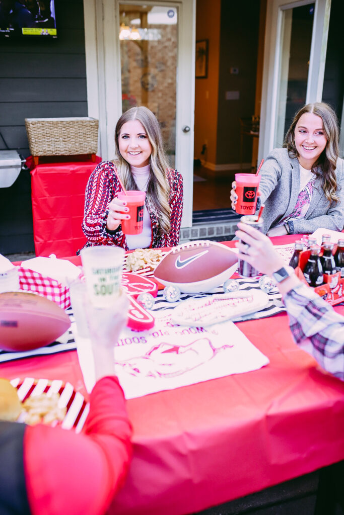 This inspiration can be replicated at home or at a tailgate outside the stadium! The key is to lean into the team colors and make it easy! All of this decor was under $200 and can be tailgate after tailgate for the whole season!