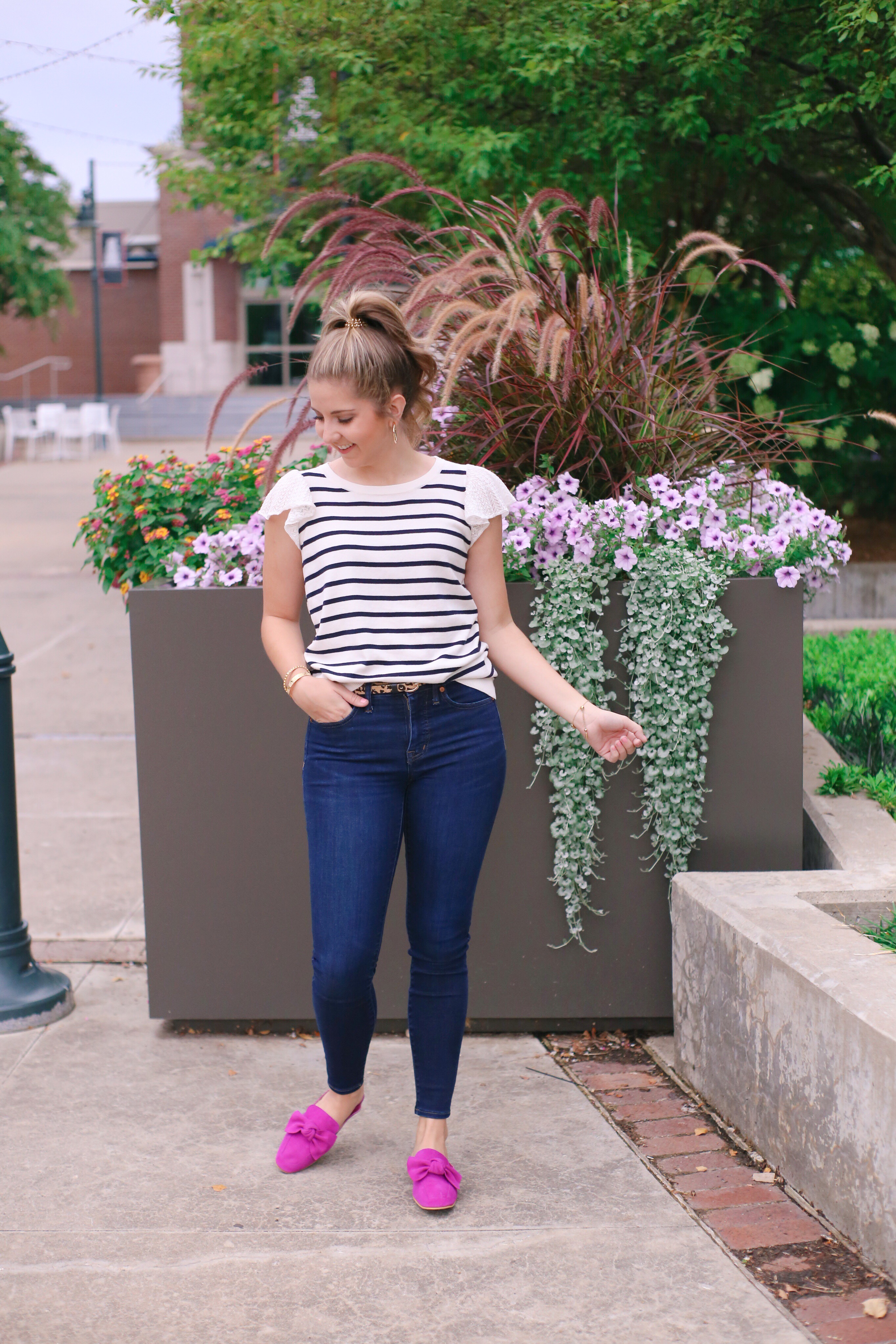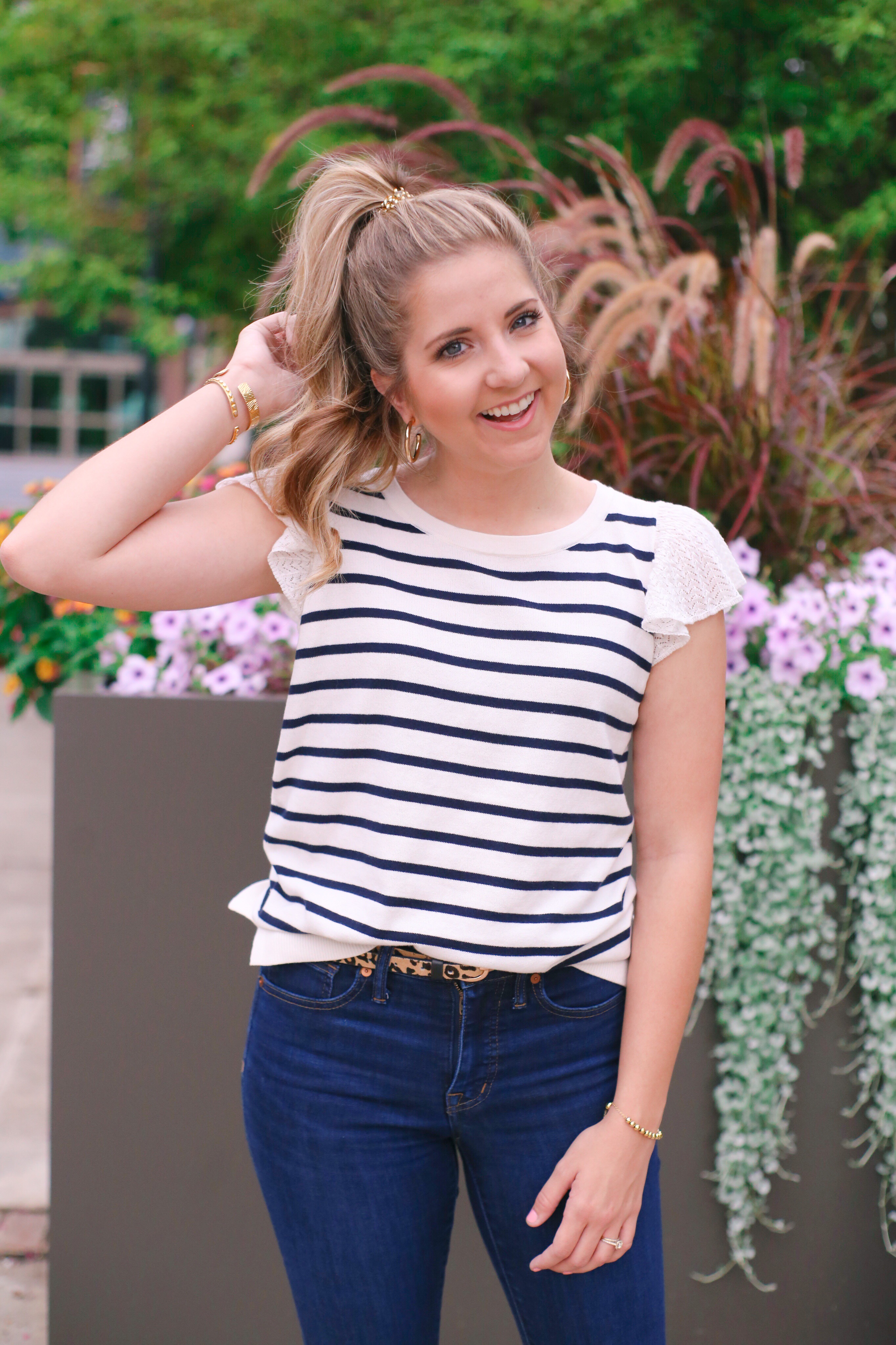 Just a few weeks ago I tried on this stripe top and loved it. It was originally $50 and then just last week it was on sale for $30 and was then discounted again. (check out the deal here!) Patience is key!