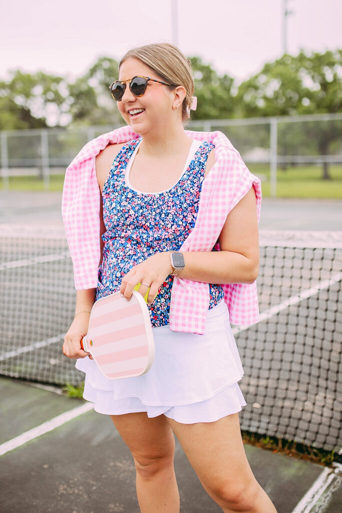 Pickleball is a fast-growing sport that combines elements of tennis, badminton, and ping pong. Jared and I are picking it up slowly and it’s a great way to spend time together doing something fun outside. Plus along with the outdoor fun of the sport comes really cute outfits! While pickleball shares similarities with tennis, there are some key differences that should be taken into consideration when choosing your attire. Whether you are a regular pickleballer or first-time picklerballer or heading to a fun event, here’s some insight on what to wear to pickleball.